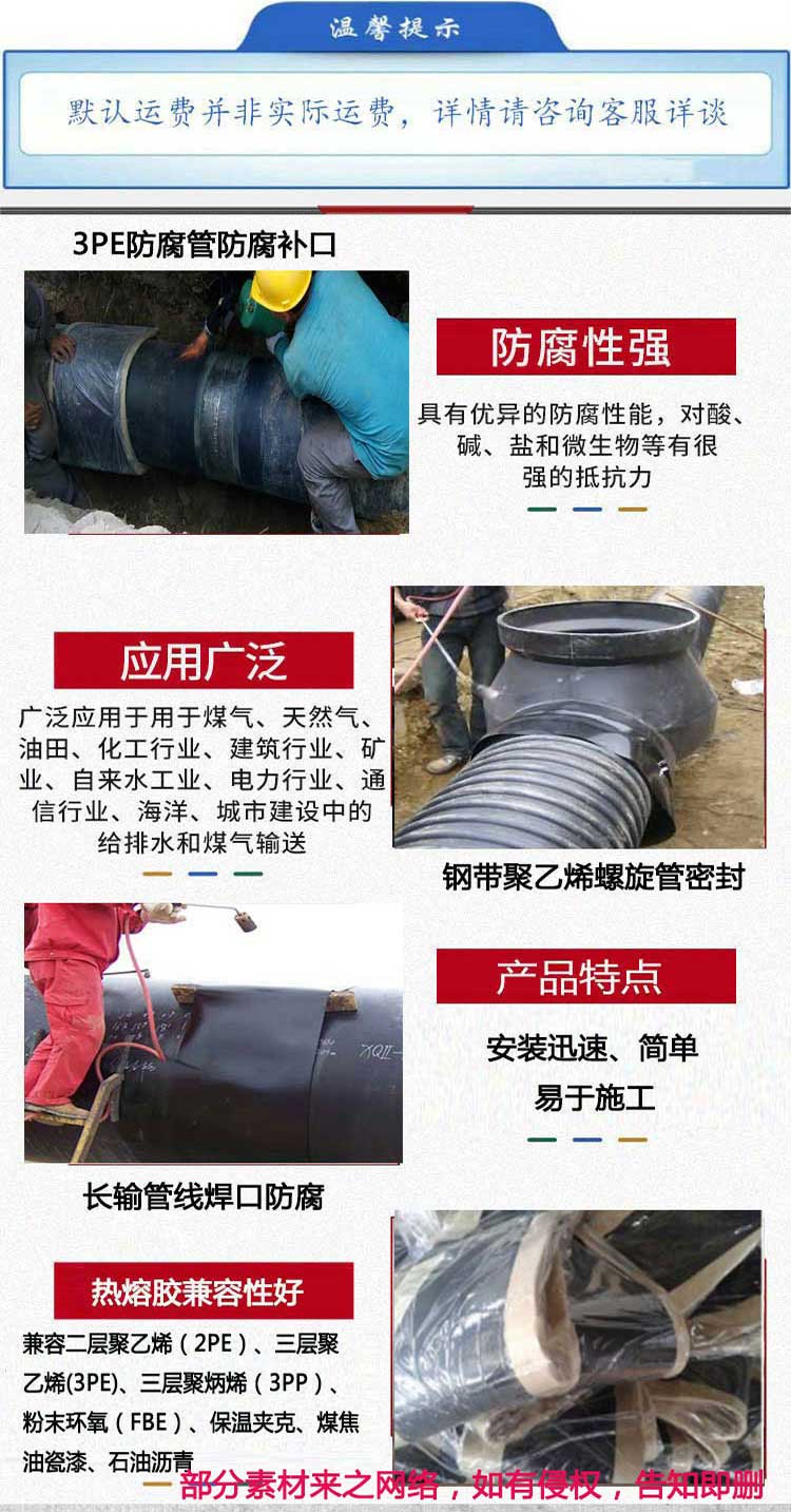 用 途:3PE防腐管道的补口防腐、保温管道焊口防腐,保温管道大小头、阀门密封等。