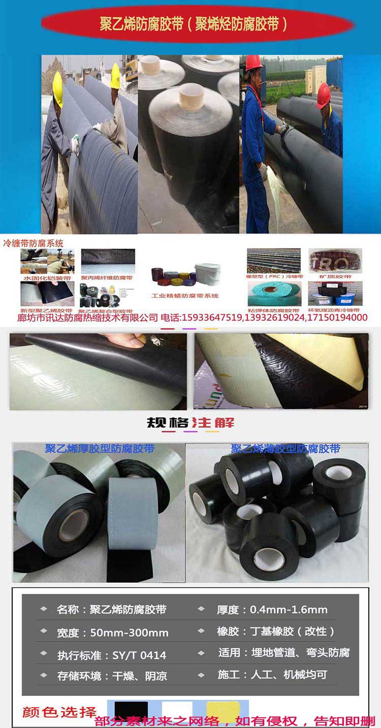 其他名称:聚乙烯冷缠带,内带、外带,复合型聚乙烯防腐胶带,聚烯烃防腐胶带